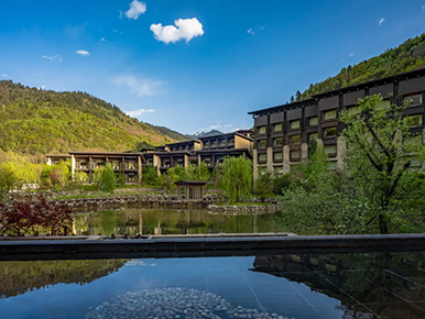 酒店是对藏族文化的现代诠释,酒店中流淌着宁静的溪流,旨在激发人与自然之间的和谐。酒店坐落于山峦环绕、群山环抱的中查沟,客人可以在房间的阳台或者拥有山景或湖景的客房内享受轻松惬意的住宿体验。